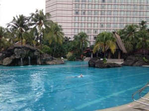 Oh boy this is not good. This nice hotel does not have phones on each floor so calling the front desk is not an option.That would be way too simple. And I am certainly not going to knock on someone’s door asking for help. So I separate the paper; putting one section to my front side and one section to my back side. I walk (crab) my way to the elevator, press the button, wait forever for it to arrive, quickly hop aboard and press the lobby button. Praying is not the exact word I would use but I was sure hoping no one else in the hotel was having my time zone sleeping issues. The elevator reached the first floor and slowly opened … to an empty lobby. Whew, catching some luck. But I am still not going to just walk out into the lobby and cause someone to have a heart attack or quick call to 911. The front desk is not out in the open but is a part of the right wall. So, in a loud whisper I call out to the desk asking if some one was there. Again, at 4 a.m. in the morning what are the odds that the desk is empty and the concierge is sleeping in the back? And out pops a head from behind the desk. He looks around the lobby trying to find the source of the voice and then lands on me standing in the elevator displaying the newspaper, smiling weakly. What could be going through his head; drunk, crazy, is this guy actually staying here, should I call security? Eventually he comes out from behind the desk but does not come any closer. I wouldn’t have either. In a few simple sentences I explain my plight, assuring him that I am in fact a guest and not a lunatic and could prove it once I get into my room. Shaking his head he gets a key and joins me in the elevator, as far away from me as possible. It turns out that the night clerk is a college student making extra money and studying during the quiet times. He also has a sense of humor. On our slow ride up to my floor he suggests that the newspaper hiding my front should be the want ads and the one hiding my rear be the sports section. Hahaha. Not to be outdone, I countered that maybe the front should be breaking news and the back section the classified ads under ‘needs help’. What else can you do in this situation but make fun. We reach the floor, he unlocks the door, I hastily slip on a robe and confirm my guest status. He wishes me a good rest of the night and I can hear his chuckles as he walks down the hallway to the elevator.